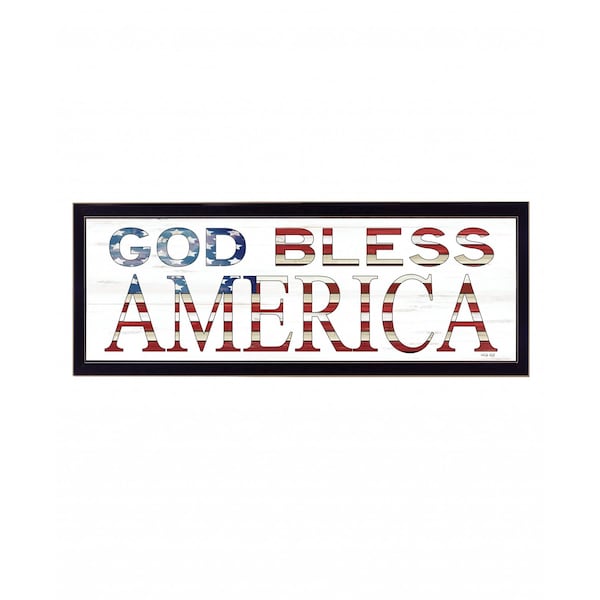 This god bless america 7 black framed print wall art will add a beautiful decorative accent to your decor. This print is a visual artistic expression that allows you to decorate your space in style. Reproduced for you on wood, this hanging decorative accent will be a trendy and fashionable way to dress your walls in a rustic and modern farmhouse vibe. Hang on your wall to add some up to date fashion and decoration. Instantly liven up your space with this art that brings color and dimension to your walls. 14-inch H x 38-inch W x 1-inch D