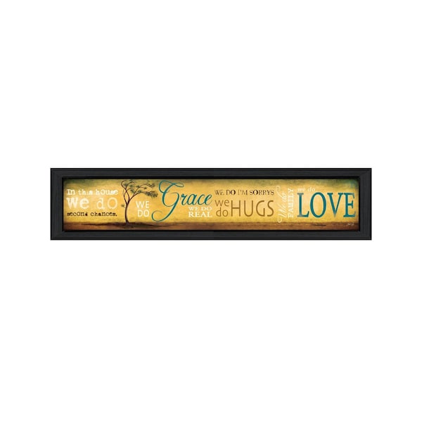 Bring some sizzle to your space with this eye-catching grace and love black framed print wall art. This print is a visual artistic expression that allows you to decorate your space in style. Reproduced for you on paper, this hanging decorative accent will be a trendy and fashionable way to dress your walls. Hang on your wall to add some up to date fashion and decoration. Instantly liven up your space with this art that brings color and dimension to your walls. 9-inch H x 39-inch W x 1-inch D