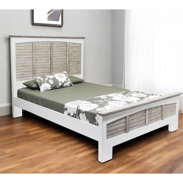 Add a luxuriously appointed bed that will help you create an oasis of comfort and relaxation in your home with this gray carved geometric distressed solid wood queen bed frame. We spend so much time in our bedrooms, thus making quality craftsmanship and good looks vitally important. This bed will help to create a peaceful environment that will provide restful slumber for years to come. 57-inch h x 66.5-inch w x 80-inch d.