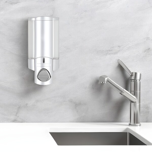Add this aesthetically pleasing matte silver / gray heavy duty plastic wall mount soap dispenser to your bathtub, shower, or sink area for a good looking and practical dispensing solution. Help to alleviate clutter and give your space a clean and cohesive look and feel. Holds a total of 11 ounces. Dispenses just the right amount of liquid each time, making this a potential money-saver as it cuts down on waste and allows you to buy bulk sized refill bottles of your product that are not only typically more cost effective, but are eco-friendly as well. 3.5-inch H x 3.25-inch W x 3.5-inch D