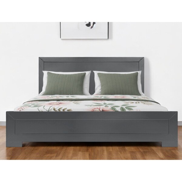 The gray inlaid panels wood queen bed frame is the ultimate combination of comfort and style. Quality craftsmanship in every facet of production ensures durability and long-lasting wear. This bed will help to create a peaceful environment that will provide restful slumber for years to come. Features high quality design that adds a contemporary vibe to your space. Contemporary styling gives this bed a clean and fresh style. 39-inch h x 82.3-inch w x 63-inch d.