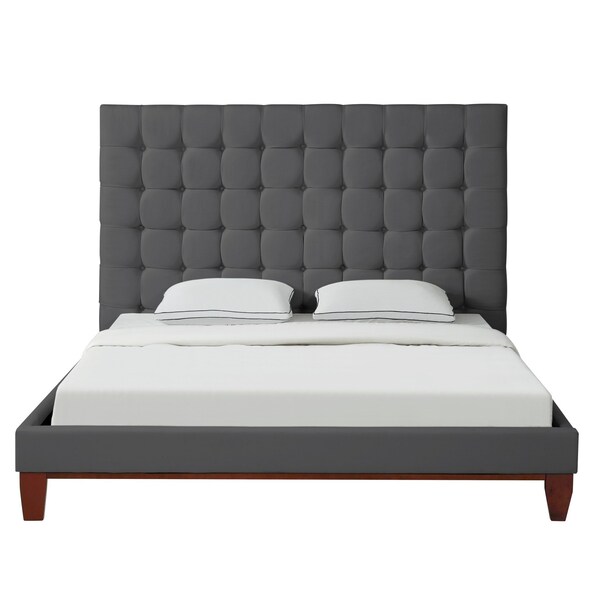 Create a haven for relaxation and sweet dreams with this fabulous gray solid wood queen tufted upholstered linen bed. This fully upholstered bed frame is covered in a beautiful button tufted gray linen that brings a unique and special touch to your room. Quality craftsmanship in every facet of production ensures durability and long-lasting wear this bed will help to create a peaceful environment that will provide restful slumber for years to come. 60.3-inch H x 89-inch W x 66.2-inch D