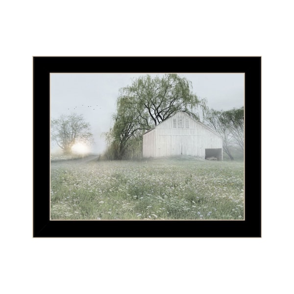 Unique and decorative, this green country morning black framed print wall art will leave a lasting impression. This print is a visual artistic expression that allows you to decorate your space in style. Reproduced for you on wood, this hanging decorative accent will be a trendy and fashionable way to dress your walls in a rustic and modern farmhouse vibe. Adding this hanging wall art to your space to make your room feel more finished and attractive. Instantly liven up your space with this art that brings color and dimension to your walls. 14-inch H x 18-inch W x 1-inch D