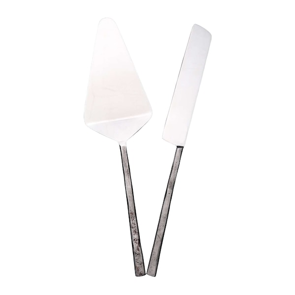 Hammered Silver Stainless Steel Two Piece Hand Forged Cake Knife