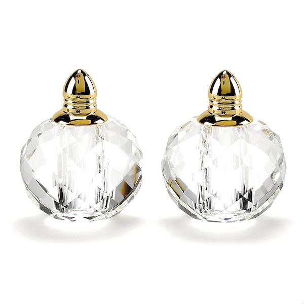 Handcrafted Optical Crystal, Gold Rounded Salt & Pepper Shakers