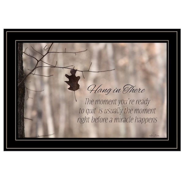 Bring some sizzle to your space with this eye-catching hang in there 2 black framed print wall art. This print is a visual artistic expression that allows you to decorate your space in style. This block print is a way to express your artistic style and add some fashion to your walls. Reproduced for you on paper, this hanging decorative accent will be a trendy and fashionable way to dress your walls. Hang on your wall to add some up to date fashion and decoration. Adding this hanging wall art to your space to make your room feel more finished and attractive. Utilize this opportunity to create a focal point in the room with this fabulous wall decor option. Instantly liven up your space with this art that brings color and dimension to your walls. 15-inch h x 21-inch w x 1-inch d