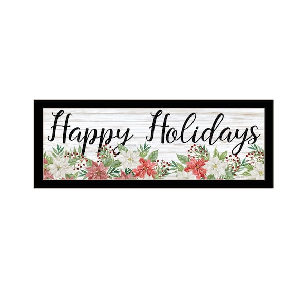 This happy holiday black framed print wall art will add a beautiful decorative accent to your decor. This print is a visual artistic expression that allows you to decorate your space in style. Reproduced for you on wood, this hanging decorative accent will be a trendy and fashionable way to dress your walls in a rustic and modern farmhouse vibe. Hang on your wall to add some up to date fashion and decoration. Utilize this opportunity to create a focal point in the room with this fabulous wall decor option. 15-inch H x 39-inch W x 1-inch D