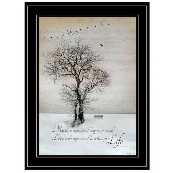 Unique and decorative, this harmony 2 black framed print kitchen wall art will leave a lasting impression. This print is a visual artistic expression that allows you to decorate your space in style. Reproduced for you on paper, this hanging decorative accent will be a trendy and fashionable way to dress your walls. Hang on your wall to add some up to date fashion and decoration. Instantly liven up your space with this art that brings color and dimension to your walls. 19-inch H x 15-inch W x 1-inch D