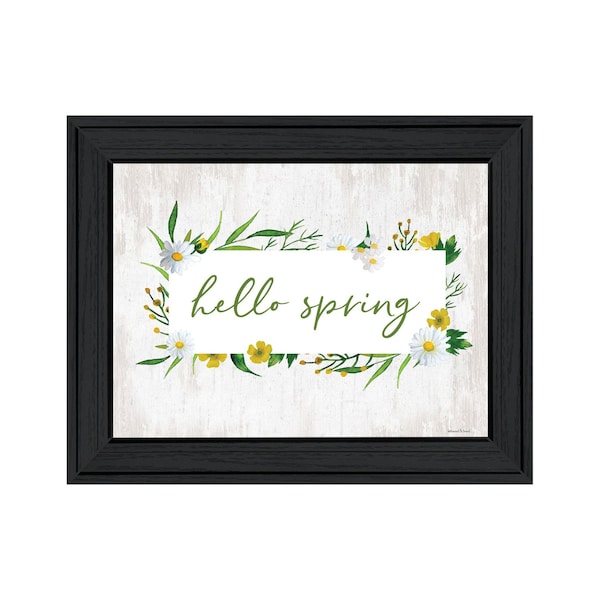 Unique and decorative, this hello spring black framed print wall art will leave a lasting impression. This print is a visual artistic expression that allows you to decorate your space in style. Reproduced for you on wood, this hanging decorative accent will be a trendy and fashionable way to dress your walls in a rustic and modern farmhouse vibe. Hang on your wall to add some up to date fashion and decoration. Instantly liven up your space with this art that brings color and dimension to your walls. 15-inch H x 21-inch W x 1-inch D
