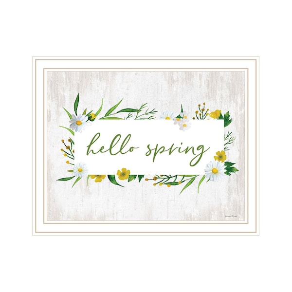 The hello spring white framed print wall art is the perfect decorative accessory for your home. This print is a visual artistic expression that allows you to decorate your space in style. Reproduced for you on wood, this hanging decorative accent will be a trendy and fashionable way to dress your walls in a rustic and modern farmhouse vibe. Adding this hanging wall art to your space to make your room feel more finished and attractive. Instantly liven up your space with this art that brings color and dimension to your walls. 14-inch H x 20-inch W x 1-inch D