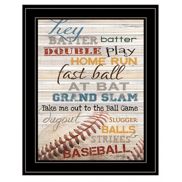 This hey batter batter 2 black framed print wall art will add a beautiful decorative accent to your decor. This print is a visual artistic expression that allows you to decorate your space in style. Reproduced for you on wood, this hanging decorative accent will be a trendy and fashionable way to dress your walls in a rustic and modern farmhouse vibe. Hang on your wall to add some up to date fashion and decoration. Instantly liven up your space with this art that brings color and dimension to your walls. 19-inch H x 15-inch W x 1-inch D
