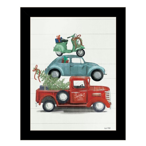 The holiday travels black framed print wall art is the perfect decorative accessory for your home. This print is a visual artistic expression that allows you to decorate your space in style. Reproduced for you on wood, this hanging decorative accent will be a trendy and fashionable way to dress your walls in a rustic and modern farmhouse vibe. Adding this hanging wall art to your space to make your room feel more finished and attractive. Utilize this opportunity to create a focal point in the room with this fabulous wall decor option. 14-inch H x 18-inch W x 1-inch D