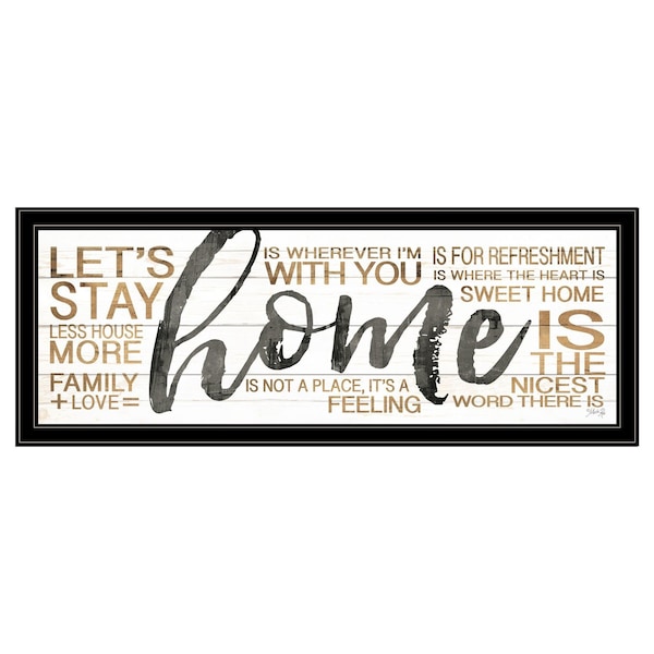 The home 4 black framed print wall art is the perfect decorative accessory for your home. This print is a visual artistic expression that allows you to decorate your space in style. Reproduced for you on paper, this hanging decorative accent will be a trendy and fashionable way to dress your walls. Hang on your wall to add some up to date fashion and decoration. Instantly liven up your space with this art that brings color and dimension to your walls. 15-inch H x 39-inch W x 1-inch D