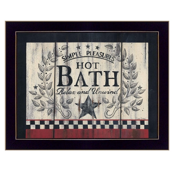 Bring some sizzle to your space with this eye-catching hot bath 15 black framed print bathroom wall art. This print is a visual artistic expression that allows you to decorate your space in style. Reproduced for you on paper, this hanging decorative accent will be a trendy and fashionable way to dress your walls. Hang on your wall to add some up to date fashion and decoration. Utilize this opportunity to create a focal point in the room with this fabulous wall decor option. 10-inch H x 14-inch W x 1-inch D