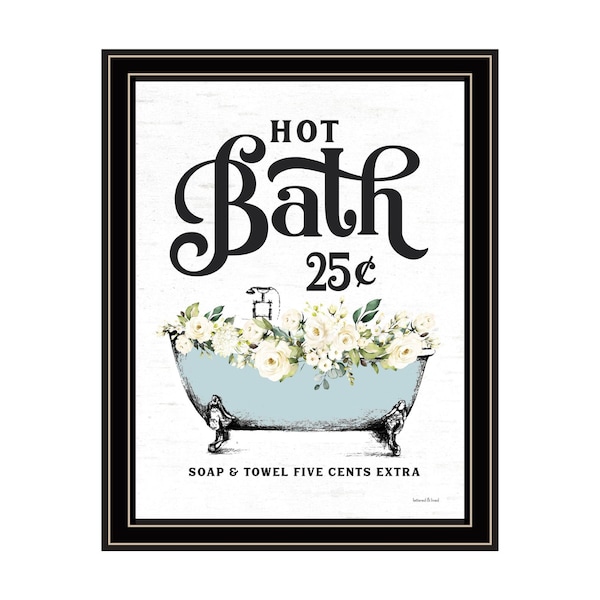 The hot bath black framed print bathroom wall art is the perfect decorative accessory for your home. This print is a visual artistic expression that allows you to decorate your space in style. Reproduced for you on wood, this hanging decorative accent will be a trendy and fashionable way to dress your walls in a rustic and modern farmhouse vibe. Hang on your wall to add some up to date fashion and decoration. Utilize this opportunity to create a focal point in the room with this fabulous wall decor option. 18-inch H x 14-inch W x 1-inch D