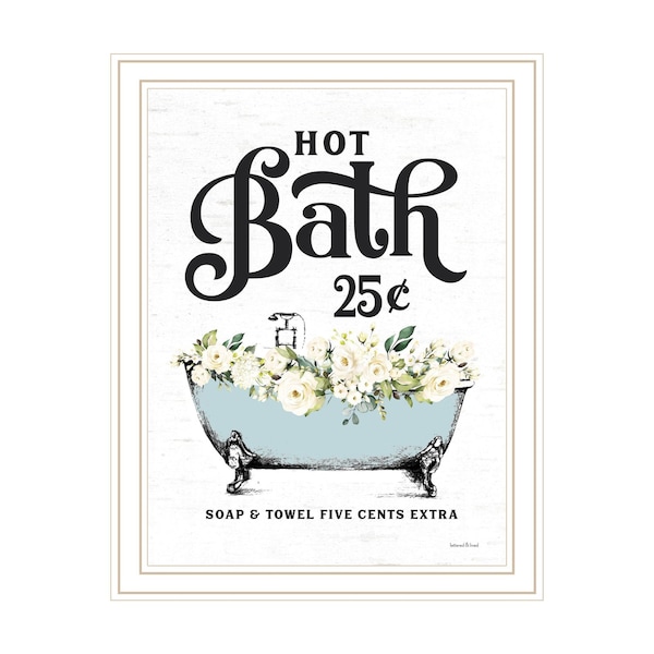 Bring some sizzle to your space with this eye-catching hot bath white framed print bathroom wall art. This print is a visual artistic expression that allows you to decorate your space in style. Reproduced for you on wood, this hanging decorative accent will be a trendy and fashionable way to dress your walls in a rustic and modern farmhouse vibe. Adding this hanging wall art to your space to make your room feel more finished and attractive. Utilize this opportunity to create a focal point in the room with this fabulous wall decor option. 18-inch H x 14-inch W x 1-inch D