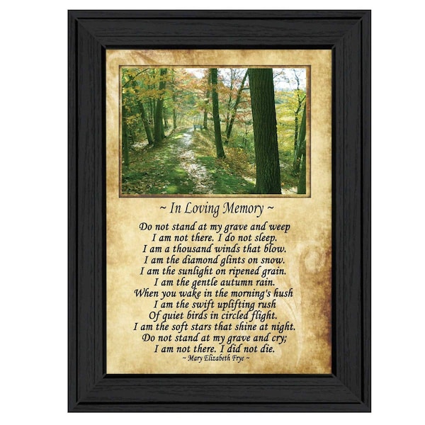 Add an air of fashion to your room and rejuvenate the space with this in loving memory 1 black framed print wall art. This print is a visual artistic expression that allows you to decorate your space in style. Reproduced for you on paper, this hanging decorative accent will be a trendy and fashionable way to dress your walls. Hang on your wall to add some up to date fashion and decoration. Utilize this opportunity to create a focal point in the room with this fabulous wall decor option. 10-inch H x 14-inch W x 1-inch D