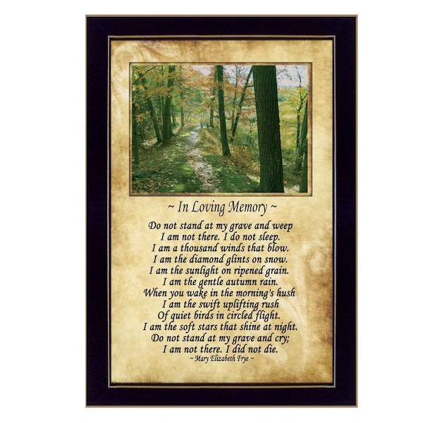 Unique and decorative, this in loving memory forest black framed print wall art will leave a lasting impression. This print is a visual artistic expression that allows you to decorate your space in style. Reproduced for you on wood, this hanging decorative accent will be a trendy and fashionable way to dress your walls in a rustic and modern farmhouse vibe. Adding this hanging wall art to your space to make your room feel more finished and attractive. Instantly liven up your space with this art that brings color and dimension to your walls. 14-inch H x 10-inch W x 1-inch D