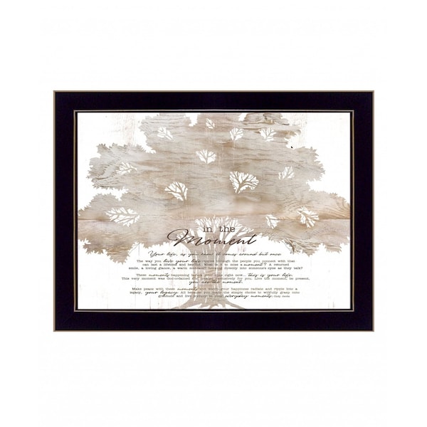 This in the moment 1 black framed print wall art will add a beautiful decorative accent to your decor. This print is a visual artistic expression that allows you to decorate your space in style. Reproduced for you on wood, this hanging decorative accent will be a trendy and fashionable way to dress your walls in a rustic and modern farmhouse vibe. Hang on your wall to add some up to date fashion and decoration. Instantly liven up your space with this art that brings color and dimension to your walls. 14-inch H x 18-inch W x 1-inch D