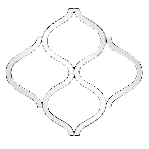 Beautify your space with this interlocking mirrored curved shapes with beveled edge. A dazzling piece of curved, geometric shaped mirrored artwork, this decor will be a great useful addition to your home but will also help elevate the space in the room. Produced with premium quality glass for a beautiful reflection, this is the perfect accent piece for an entryway, bathroom, bedroom, hallway or office. Each mirrored panel on this piece has a small bevel adding to its beauty and style. 29.00-inch h x 27.00-inch w x 1.00-inch d.