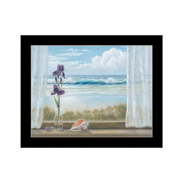 This irises on windowsill black framed print wall art will add a beautiful decorative accent to your decor. This print is a visual artistic expression that allows you to decorate your space in style. Reproduced for you on wood, this hanging decorative accent will be a trendy and fashionable way to dress your walls in a rustic and modern farmhouse vibe. Hang on your wall to add some up to date fashion and decoration. Instantly liven up your space with this art that brings color and dimension to your walls. 14-inch H x 18-inch W x 1-inch D