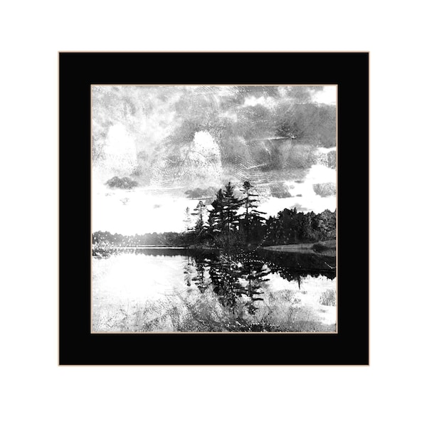 This lakeside pines black framed print wall art will add a beautiful decorative accent to your decor. This print is a visual artistic expression that allows you to decorate your space in style. Reproduced for you on wood, this hanging decorative accent will be a trendy and fashionable way to dress your walls in a rustic and modern farmhouse vibe. Hang on your wall to add some up to date fashion and decoration. Utilize this opportunity to create a focal point in the room with this fabulous wall decor option. 14-inch H x 14-inch W x 1-inch D