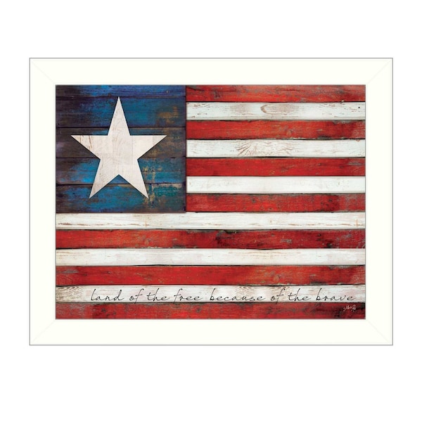 The land of the free white framed print wall art is the perfect decorative accessory for your home. This print is a visual artistic expression that allows you to decorate your space in style. Reproduced for you on paper, this hanging decorative accent will be a trendy and fashionable way to dress your walls. Hang on your wall to add some up to date fashion and decoration. Utilize this opportunity to create a focal point in the room with this fabulous wall decor option. 20-inch H x 26-inch W x 1-inch D