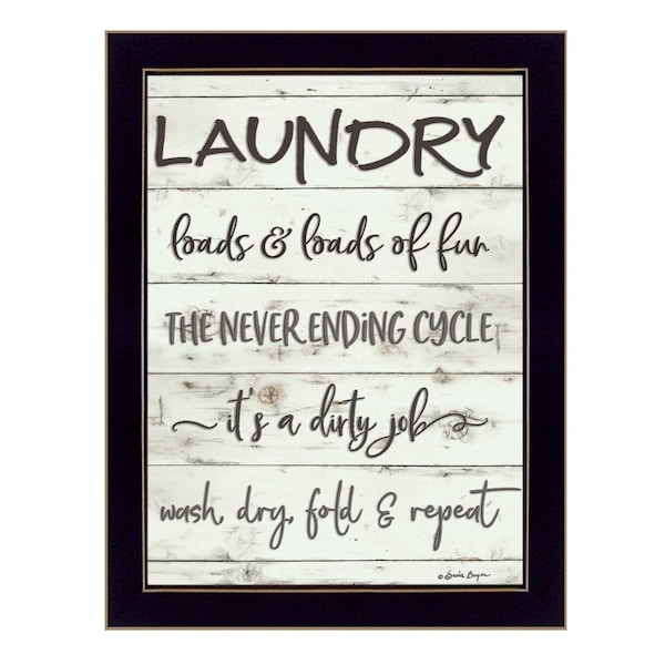 This laundry 3 black framed print bathroom wall art will add a beautiful decorative accent to your decor. This print is a visual artistic expression that allows you to decorate your space in style. Reproduced for you on paper, this hanging decorative accent will be a trendy and fashionable way to dress your walls. Adding this hanging wall art to your space to make your room feel more finished and attractive. Utilize this opportunity to create a focal point in the room with this fabulous wall decor option. 18-inch H x 14-inch W x 1-inch D