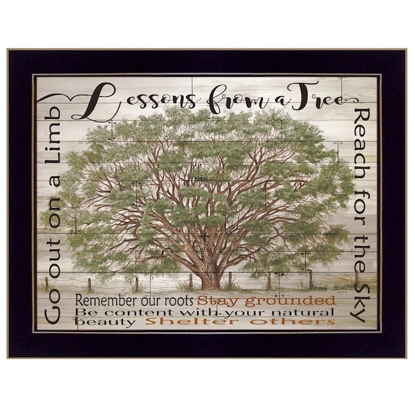 Unique and decorative, this lessons from a tree black framed print wall art will leave a lasting impression. This print is a visual artistic expression that allows you to decorate your space in style. Reproduced for you on paper, this hanging decorative accent will be a trendy and fashionable way to dress your walls. Adding this hanging wall art to your space to make your room feel more finished and attractive. Instantly liven up your space with this art that brings color and dimension to your walls. 14-inch H x 18-inch W x 1-inch D