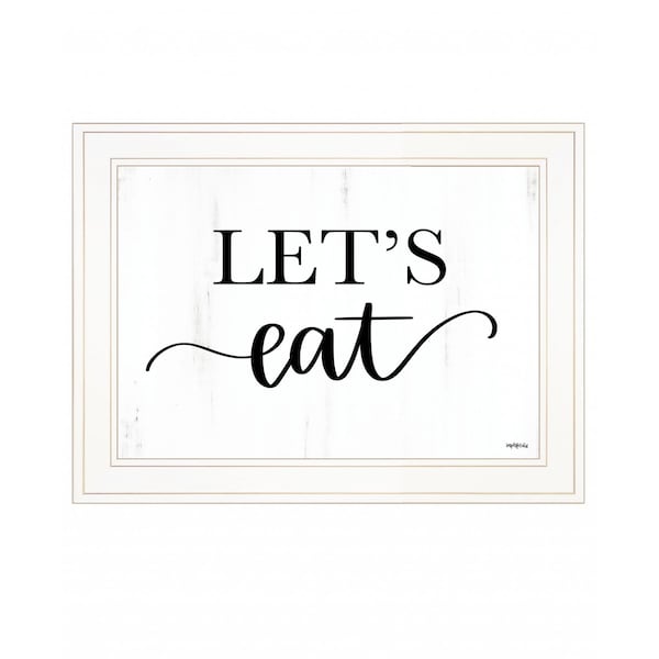 Add an air of fashion to your room and rejuvenate the space with this lets eat 2 white framed print kitchen wall art. This print is a visual artistic expression that allows you to decorate your space in style. Reproduced for you on wood, this hanging decorative accent will be a trendy and fashionable way to dress your walls in a rustic and modern farmhouse vibe. Adding this hanging wall art to your space to make your room feel more finished and attractive. Utilize this opportunity to create a focal point in the room with this fabulous wall decor option. 14-inch H x 19-inch W x 1-inch D