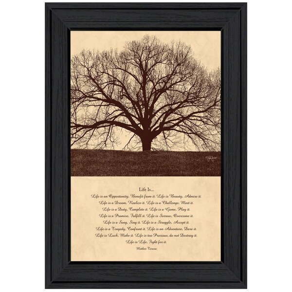 Add an air of fashion to your room and rejuvenate the space with this life is 6 black framed print wall art. This print is a visual artistic expression that allows you to decorate your space in style. Reproduced for you on paper, this hanging decorative accent will be a trendy and fashionable way to dress your walls. Hang on your wall to add some up to date fashion and decoration. Utilize this opportunity to create a focal point in the room with this fabulous wall decor option. 11-inch H x 15-inch W x 1-inch D