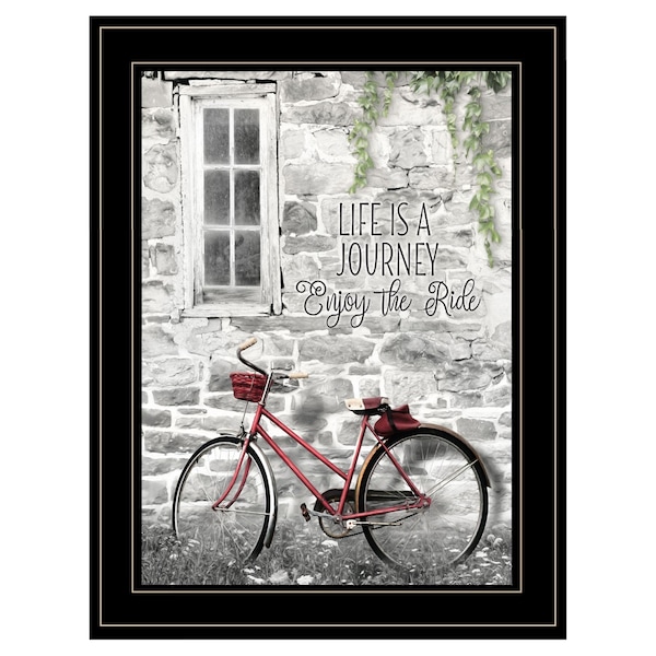 Bring some sizzle to your space with this eye-catching life is a journey 3 black framed print wall art. This transportation inspired wall art features a bicycle icon and will bring a refreshing look and perspective to your walls. This print is a visual artistic expression that allows you to decorate your space in style. Reproduced for you on paper, this hanging decorative accent will be a trendy and fashionable way to dress your walls. Hang on your wall to add some up to date fashion and decoration. Utilize this opportunity to create a focal point in the room with this fabulous wall decor option. 19-inch H x 15-inch W x 1-inch D
