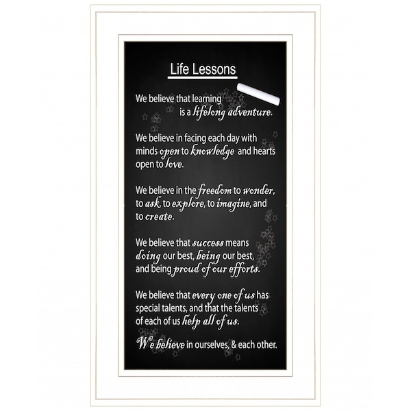 Bring some sizzle to your space with this eye-catching life lessons 3 white framed print wall art. This print is a visual artistic expression that allows you to decorate your space in style. Reproduced for you on paper, this hanging decorative accent will be a trendy and fashionable way to dress your walls. Adding this hanging wall art to your space to make your room feel more finished and attractive. Utilize this opportunity to create a focal point in the room with this fabulous wall decor option. 21-inch H x 12-inch W x 1-inch D