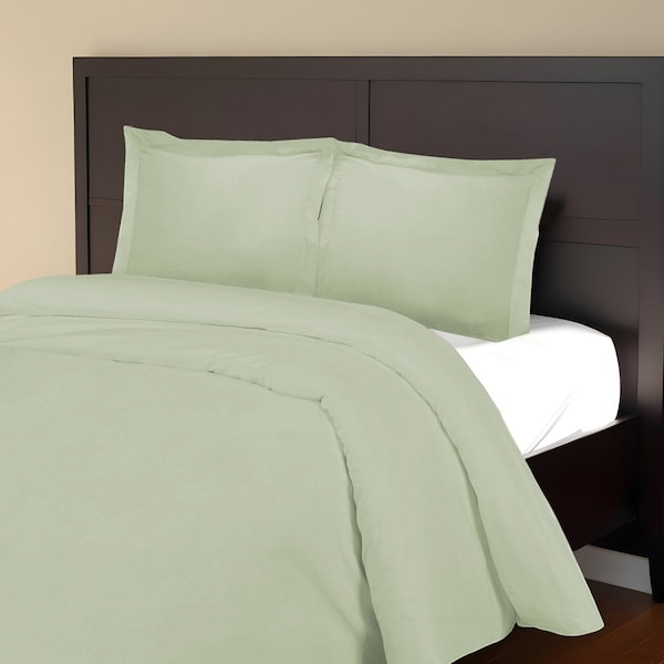 Light Green Queen Cotton Blend 1000 Thread Count Washable Duvet Cover Set