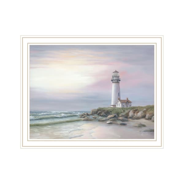 Add an air of fashion to your room and rejuvenate the space with this lighthouse at sunset white framed print wall art. This print is a visual artistic expression that allows you to decorate your space in style. Reproduced for you on wood, this hanging decorative accent will be a trendy and fashionable way to dress your walls in a rustic and modern farmhouse vibe. Adding this hanging wall art to your space to make your room feel more finished and attractive. Utilize this opportunity to create a focal point in the room with this fabulous wall decor option. 14-inch H x 18-inch W x 1-inch D