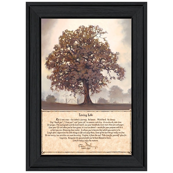 This living life 6 black framed print wall art will add a beautiful decorative accent to your decor. This print is a visual artistic expression that allows you to decorate your space in style. Reproduced for you on paper, this hanging decorative accent will be a trendy and fashionable way to dress your walls. Adding this hanging wall art to your space to make your room feel more finished and attractive. Instantly liven up your space with this art that brings color and dimension to your walls. 19-inch H x 15-inch W x 1-inch D