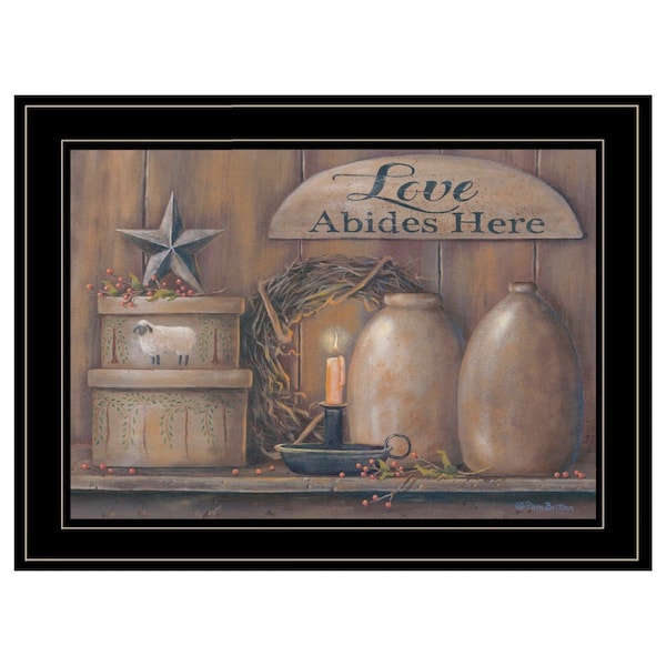 Unique and decorative, this love abides here shelf 3 black framed print wall art will leave a lasting impression. This print is a visual artistic expression that allows you to decorate your space in style. Reproduced for you on paper, this hanging decorative accent will be a trendy and fashionable way to dress your walls. Adding this hanging wall art to your space to make your room feel more finished and attractive. Instantly liven up your space with this art that brings color and dimension to your walls. 15-inch H x 19-inch W x 1-inch D