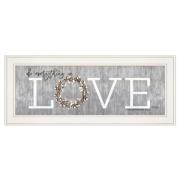 Bring some sizzle to your space with this eye-catching love do everything in love 2 white framed print wall art. This print is a visual artistic expression that allows you to decorate your space in style. Reproduced for you on paper, this hanging decorative accent will be a trendy and fashionable way to dress your walls. Hang on your wall to add some up to date fashion and decoration. Utilize this opportunity to create a focal point in the room with this fabulous wall decor option. 11-inch H x 27-inch W x 1-inch D