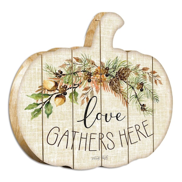 Unique and decorative, this love gathers here unframed print wall art will leave a lasting impression. This unique and novel shaped art will bring some dimension and artistic design to your wall. This print is a visual artistic expression that allows you to decorate your space in style. Reproduced for you on wood, this hanging decorative accent will be a trendy and fashionable way to dress your walls in a rustic and modern farmhouse vibe. Adding this hanging wall art to your space to make your room feel more finished and attractive. Utilize this opportunity to create a focal point in the room with this fabulous wall decor option. 15-inch H x 17.25-inch W x 1-inch D