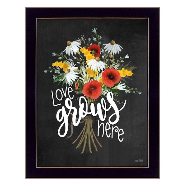 This love grows here 1 black framed print wall art will add a beautiful decorative accent to your decor. This print is a visual artistic expression that allows you to decorate your space in style. Reproduced for you on wood, this hanging decorative accent will be a trendy and fashionable way to dress your walls in a rustic and modern farmhouse vibe. Hang on your wall to add some up to date fashion and decoration. Utilize this opportunity to create a focal point in the room with this fabulous wall decor option. 18-inch H x 14-inch W x 1-inch D