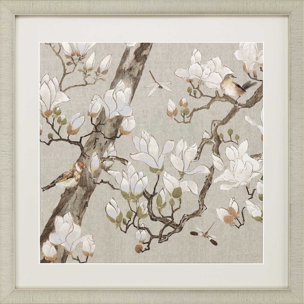 The magnolia bloom framed art gold picture frame print wall art is the perfect decorative accessory for your home. This print is a visual artistic expression that allows you to decorate your space in style. Reproduced for you on paper, this hanging decorative accent will be a trendy and fashionable way to dress your walls. Hang on your wall to add some up to date fashion and decoration. Utilize this opportunity to create a focal point in the room with this fabulous wall decor option. 33-inch H x 33-inch W x 2-inch D
