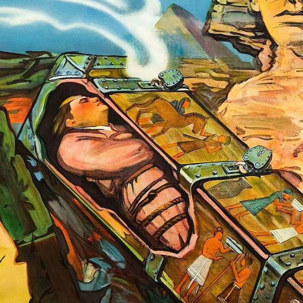 Bring some sizzle to your space with this eye-catching c1926 Houdini Master Mystifier vintage magic print wall art. Unframed, this flat poster has a fresh and distinct taste to grace your walls with style. Reproduced for you on paper, this hanging decorative accent features the world famous Houdini buried alive with an Egyptian flair as an advertisement for the Literary Digest. Featuring magic, illusions, and escapes this colorful visual will liven up your space with mystery and intrigue. 48 inches H x 36 inches W x 0.1 inches D