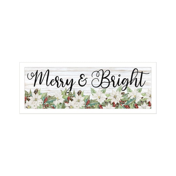 This merry and bright white framed print wall art will add a beautiful decorative accent to your decor. This print is a visual artistic expression that allows you to decorate your space in style. Reproduced for you on wood, this hanging decorative accent will be a trendy and fashionable way to dress your walls in a rustic and modern farmhouse vibe. Adding this hanging wall art to your space to make your room feel more finished and attractive. Utilize this opportunity to create a focal point in the room with this fabulous wall decor option. 15-inch H x 39-inch W x 1-inch D
