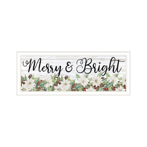 Bring some sizzle to your space with this eye-catching merry and bright white framed print wall art. This print is a visual artistic expression that allows you to decorate your space in style. Reproduced for you on wood, this hanging decorative accent will be a trendy and fashionable way to dress your walls in a rustic and modern farmhouse vibe. Hang on your wall to add some up to date fashion and decoration. Utilize this opportunity to create a focal point in the room with this fabulous wall decor option. 15-inch H x 39-inch W x 1-inch D