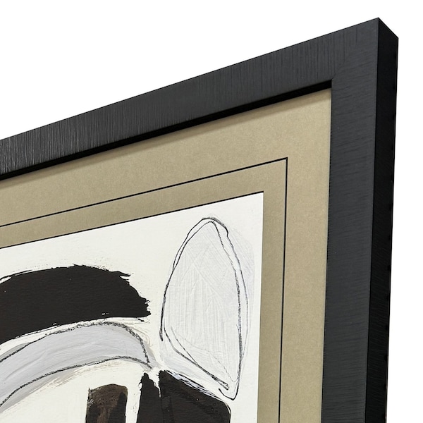Bring some sizzle to your space with this eye-catching modern abstract graphic shapes black framed wall art. This stylish print is a way to express your artistic style and add some fashion to your walls. Reproduced for you on paper, this hanging decorative accent will be a trendy and fashionable way to dress your walls. Hang on your wall to add some up to date fashion and decoration. Instantly liven up your space with this art that brings color and dimension to your walls. 35.00-inch h x 29.00-inch w x 2.00-inch d.