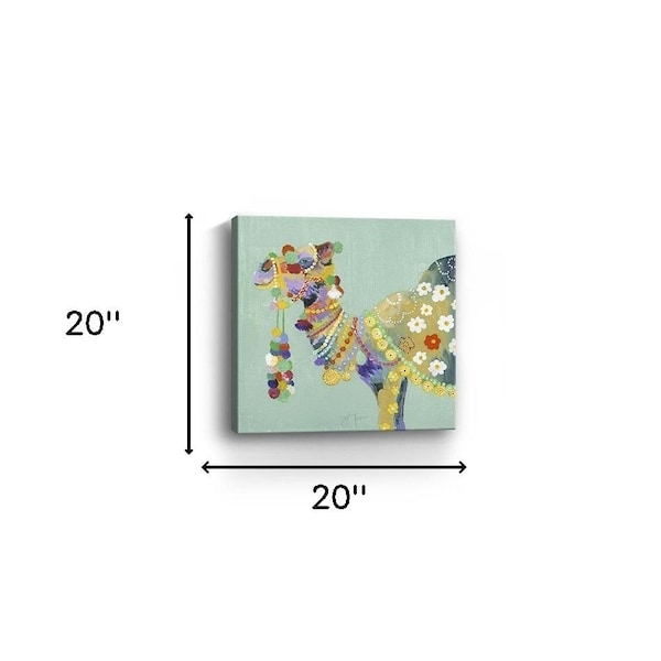 Unique and decorative, this moroccan party camel unframed print wall art will leave a lasting impression. This print is a visual artistic expression that allows you to decorate your space in style. Reproduced for you on canvas, this hanging decorative accent will be a trendy and fashionable way to dress your walls. Hang on your wall to add some up to date fashion and decoration. Instantly liven up your space with this art that brings color and dimension to your walls. 20 inches H x 20 inches W x 1.25 inches D