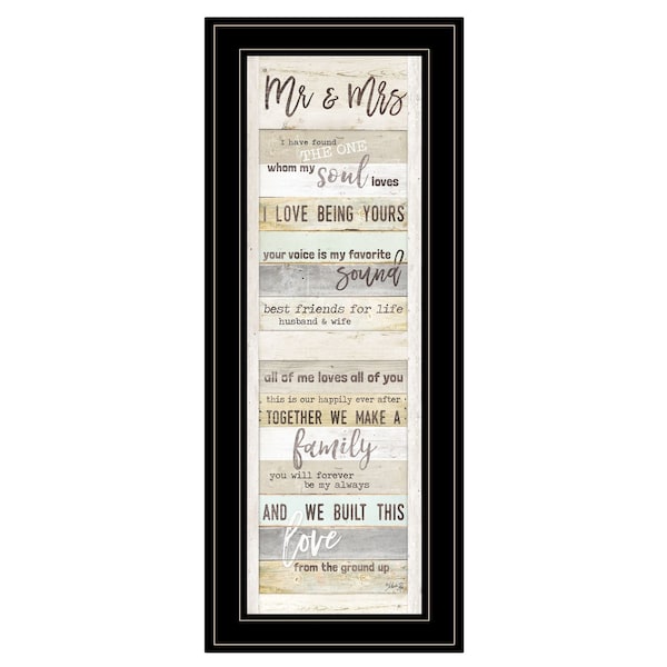 Unique and decorative, this mr and mrs 1 black framed print wall art will leave a lasting impression. This print is a visual artistic expression that allows you to decorate your space in style. Reproduced for you on paper, this hanging decorative accent will be a trendy and fashionable way to dress your walls. Hang on your wall to add some up to date fashion and decoration. Utilize this opportunity to create a focal point in the room with this fabulous wall decor option. 27-inch H x 11-inch W x 1-inch D