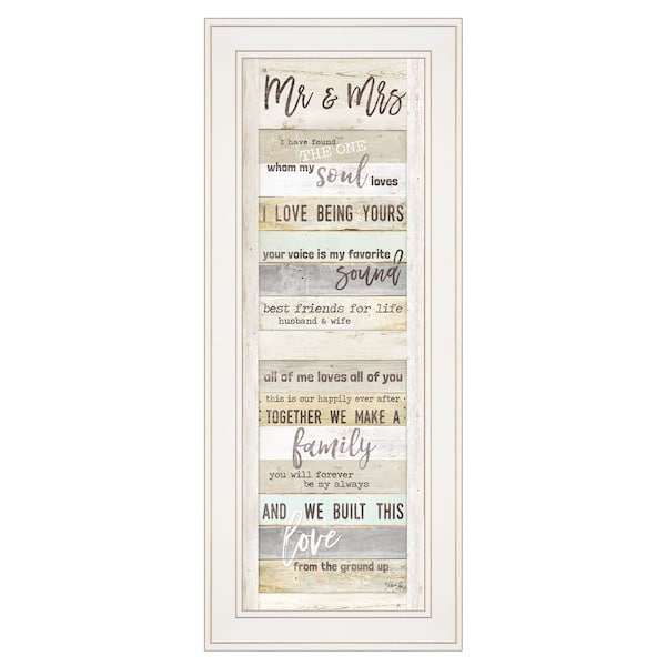 Add an air of fashion to your room and rejuvenate the space with this mr and mrs 2 white framed print wall art. This print is a visual artistic expression that allows you to decorate your space in style. Reproduced for you on paper, this hanging decorative accent will be a trendy and fashionable way to dress your walls. Adding this hanging wall art to your space to make your room feel more finished and attractive. Utilize this opportunity to create a focal point in the room with this fabulous wall decor option. 27-inch H x 11-inch W x 1-inch D