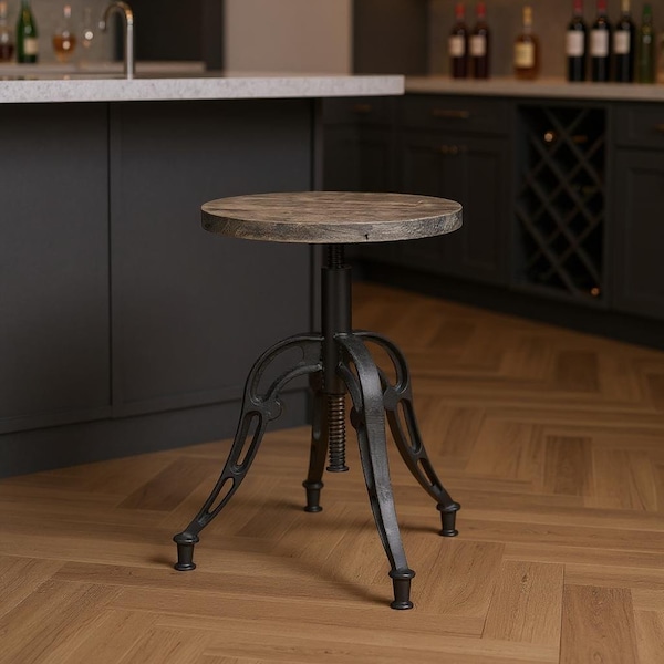 The perfect way to add some extra seating in your home, this natural and black solid wood and iron backless adjustable height bar chair will elevate the look and vibe of your room. The natural rustic round solid wood seat of this stool is a nice contrast to the high quality, black iron of the base. A backless design mixes with a round shaped seat makes this chair both comfortable and fashionable. 25-inch h x 15.75-inch w x 15.75-inch d.