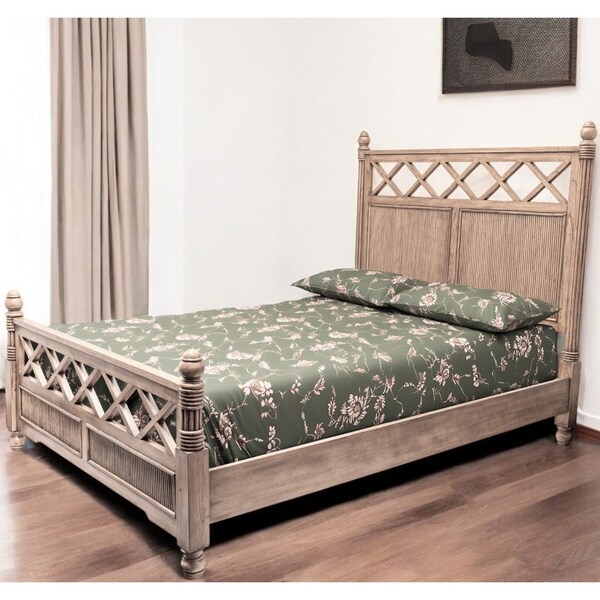 Natural Carved Geometric Solid Wood Queen Bed Frame